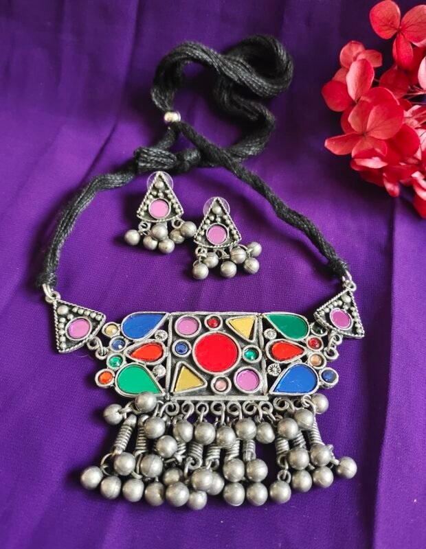 Multi-Color Stone Afghani Choker Set