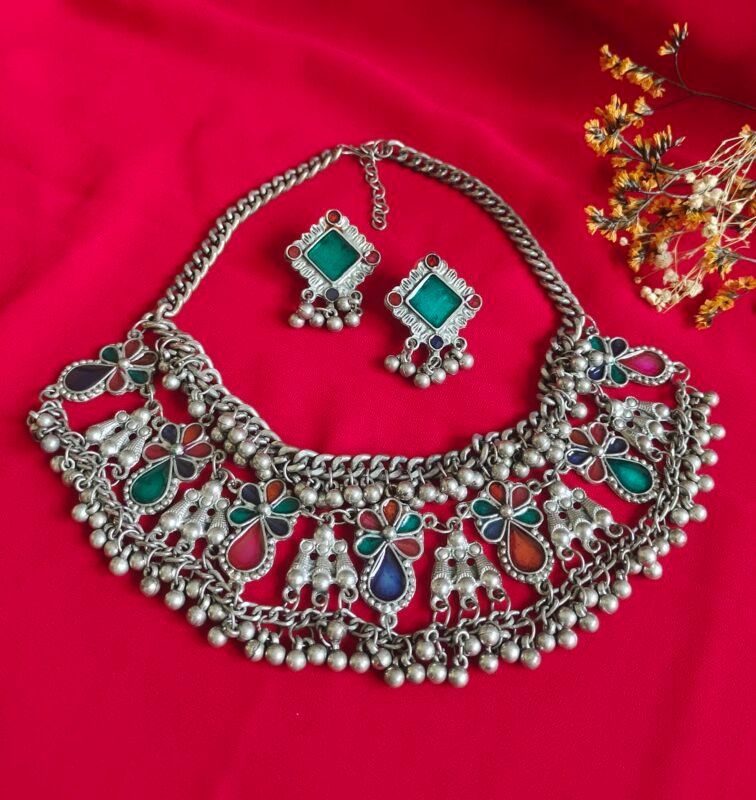 Azure Bloom Afghani Necklace Set