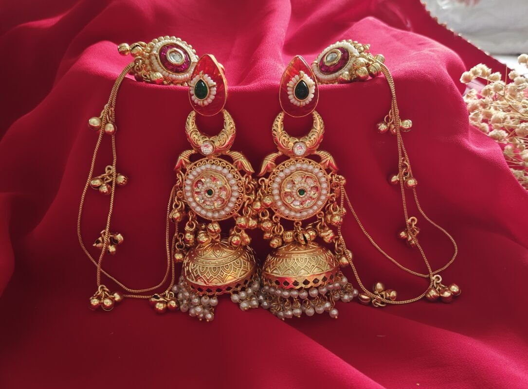 Kashmiri Jhumka Earrings with Sahar (Ear Chains)