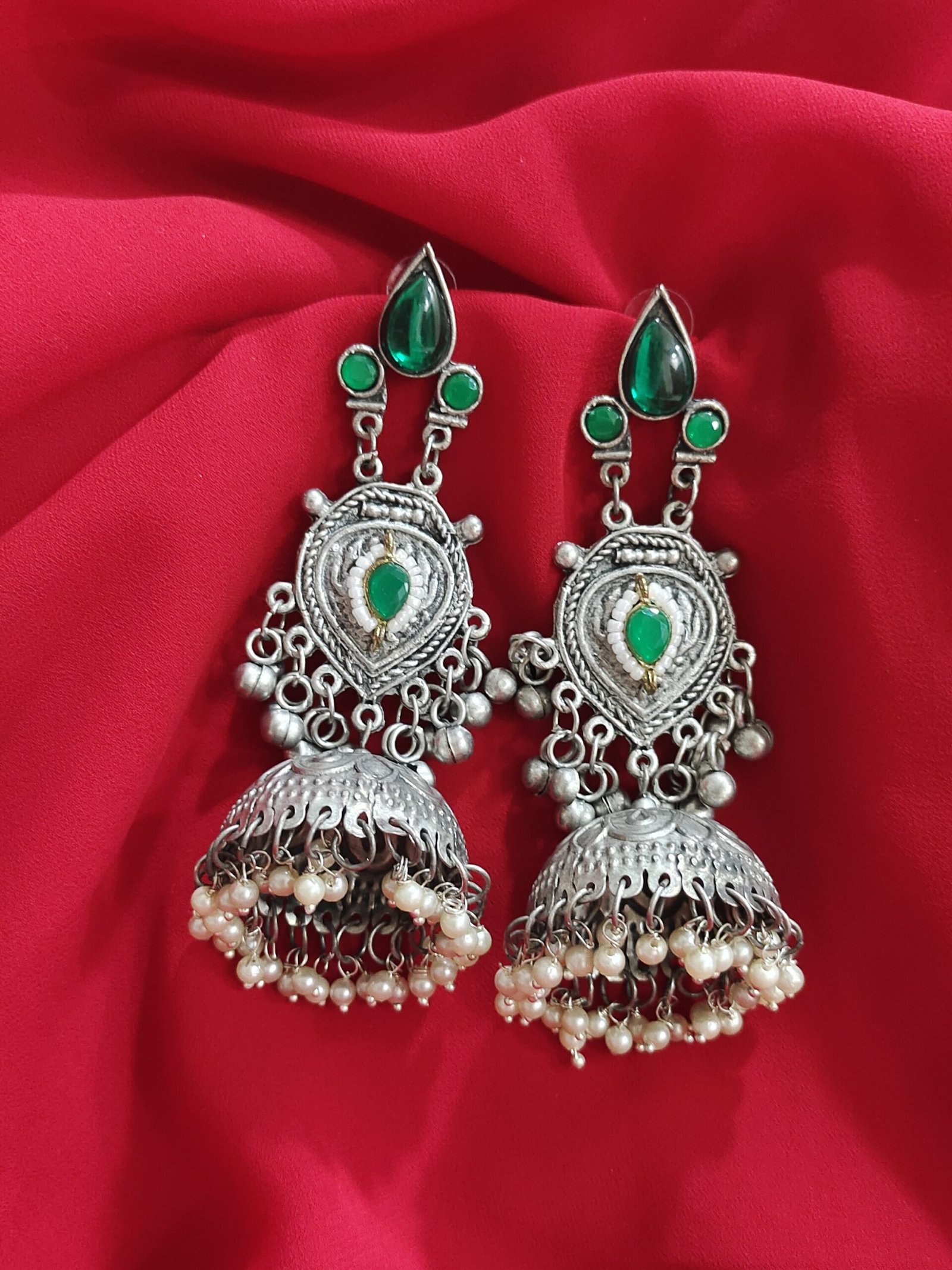 Tags: black polish, bohemian look, boho earring, jumka, long earring, navratri, oxidised earring, statement piece, trendy