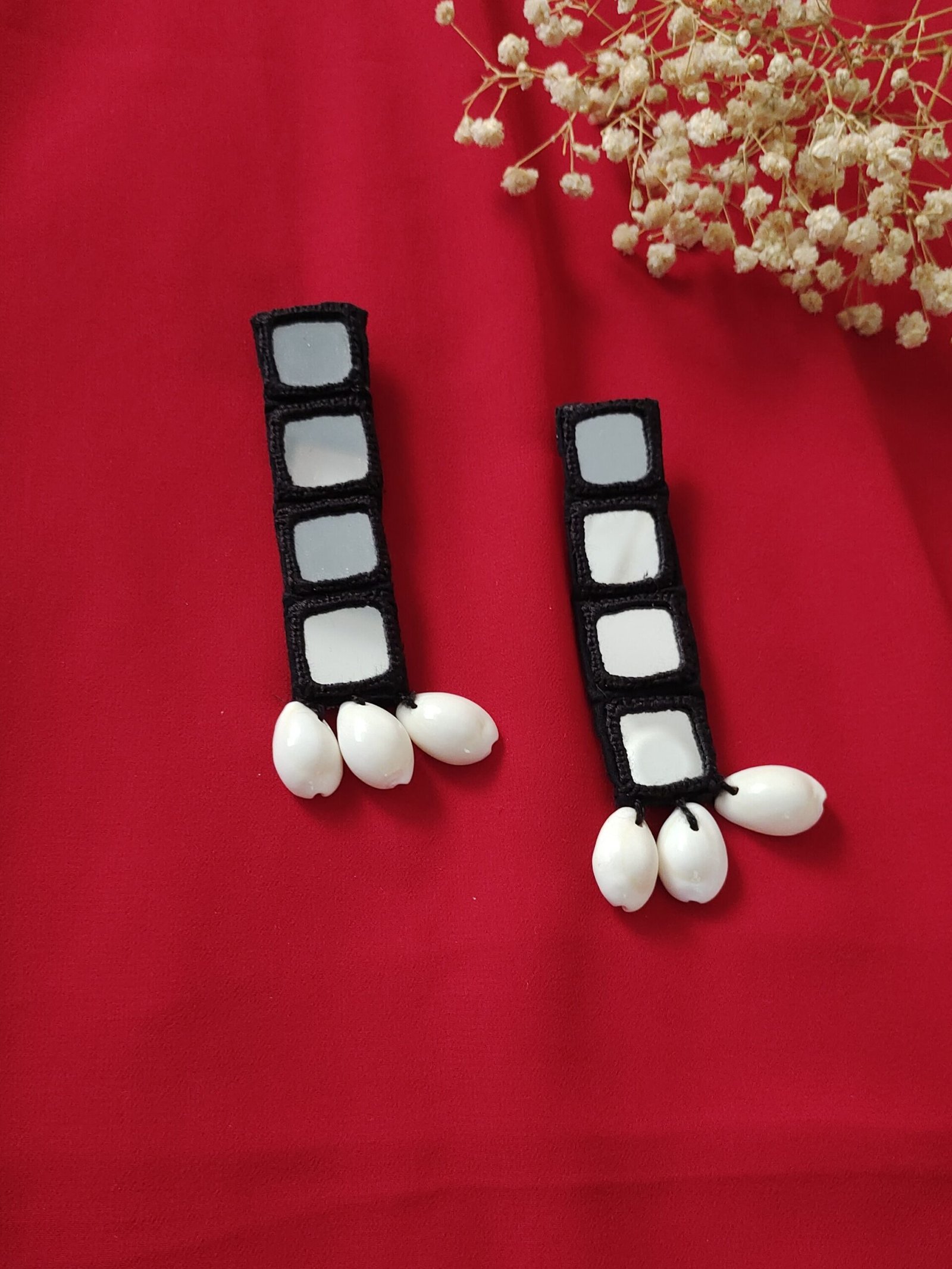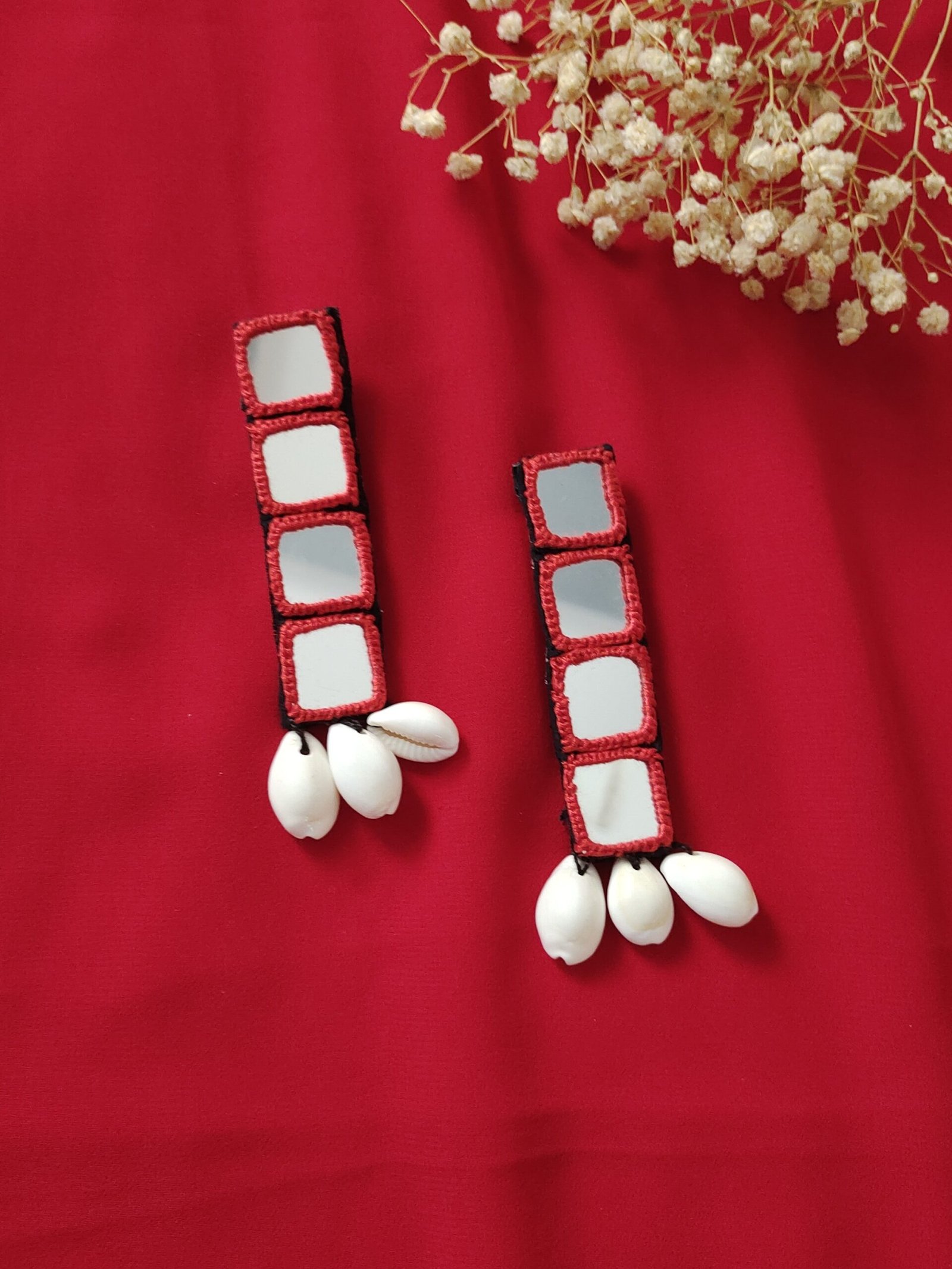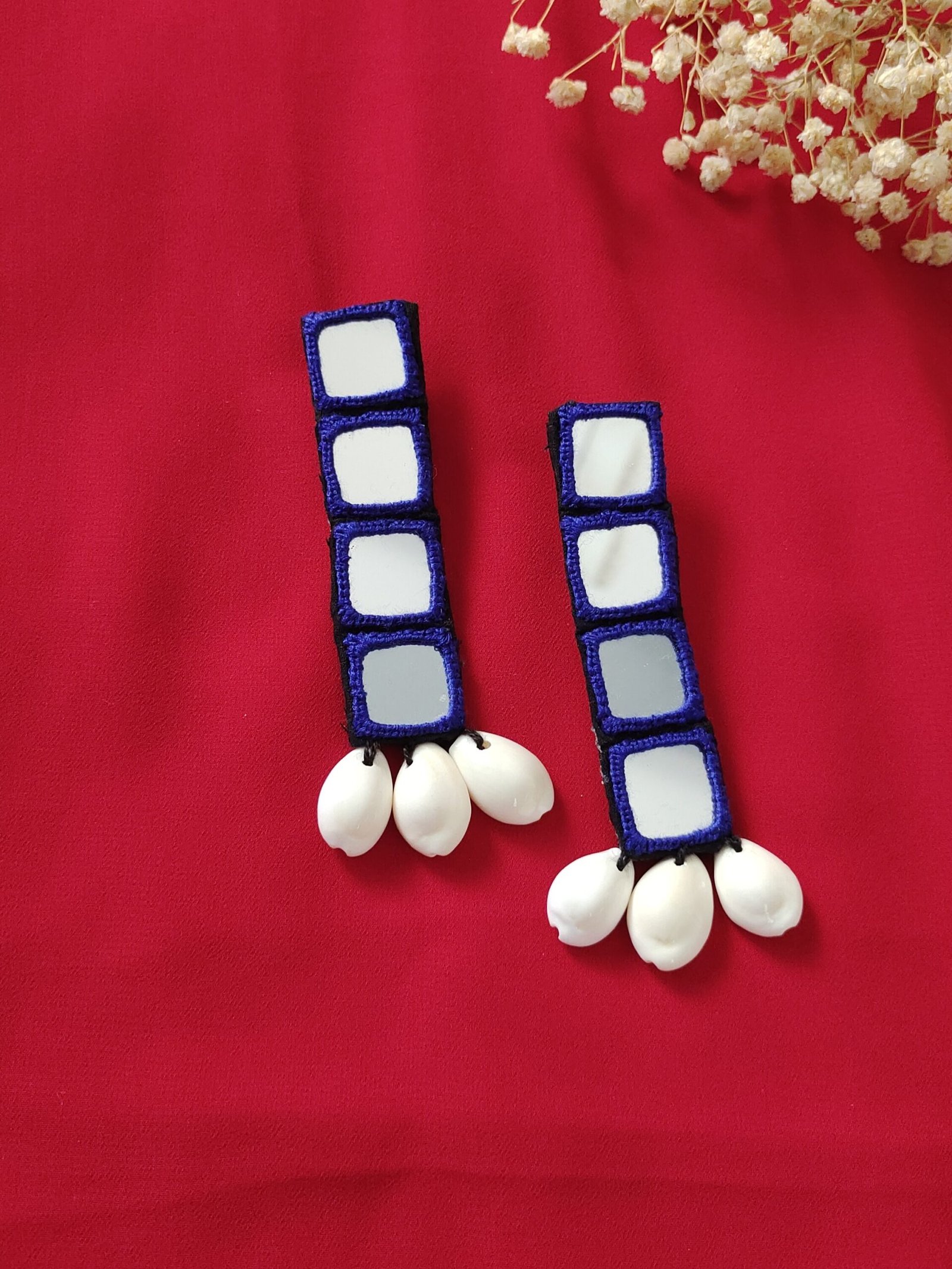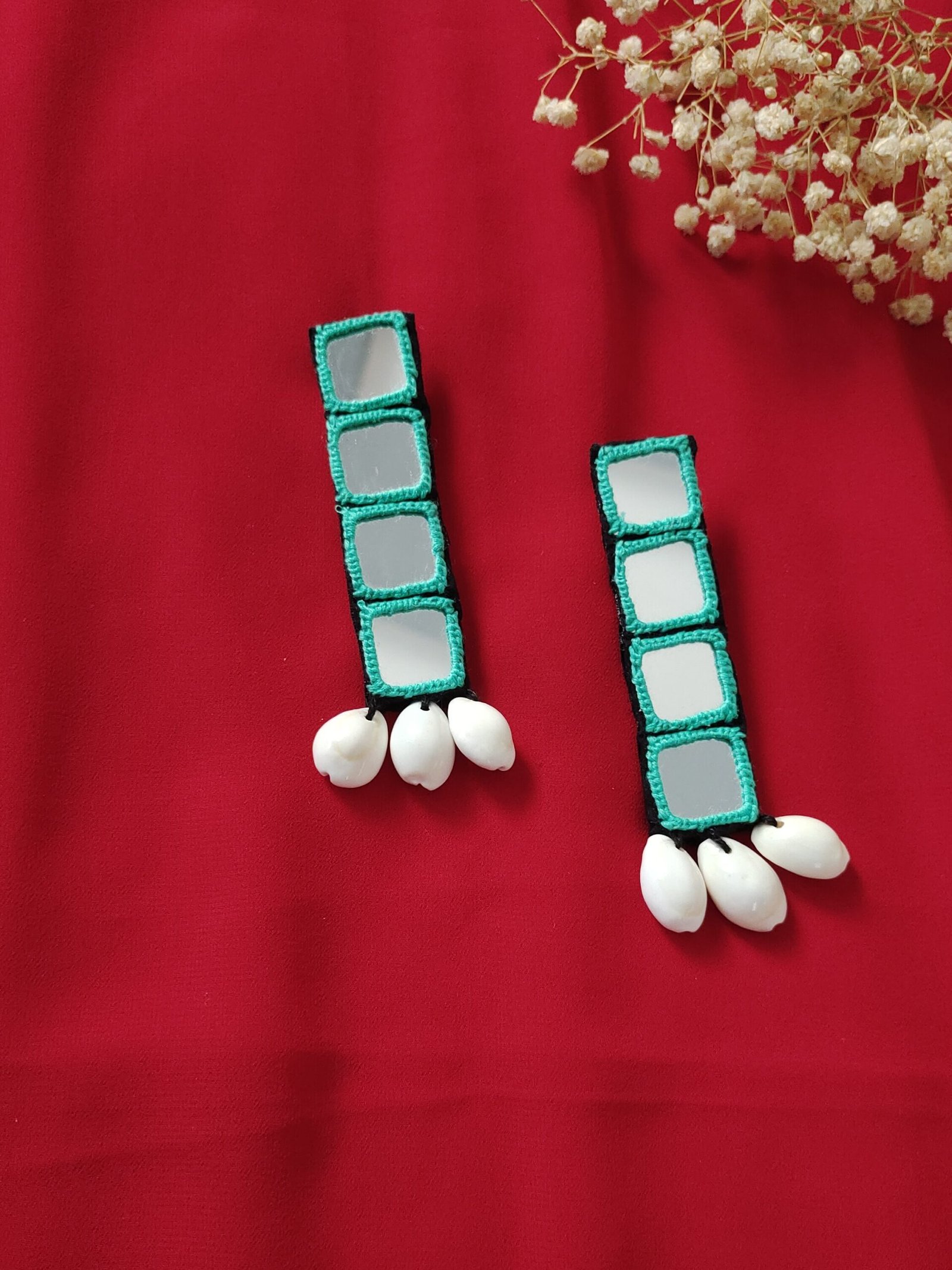 Tags: cowrie shell, earring, handcrafted, handmade, handmade earrings, mirror, mirror earring, Navratri collection, thread work
