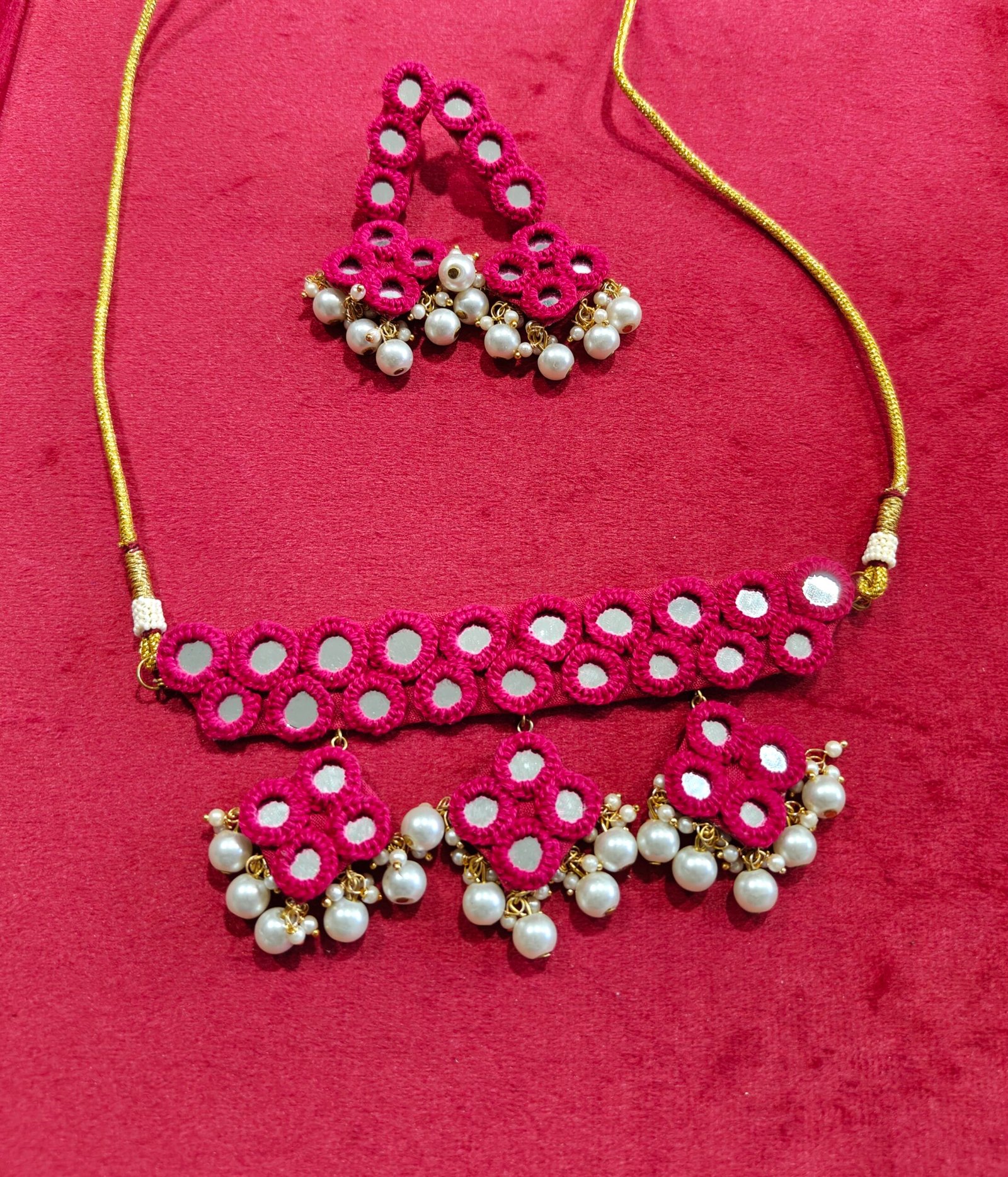 Tags: bridal set, handmade, mirror, mirror work, Necklace, Necklace Set, pearl