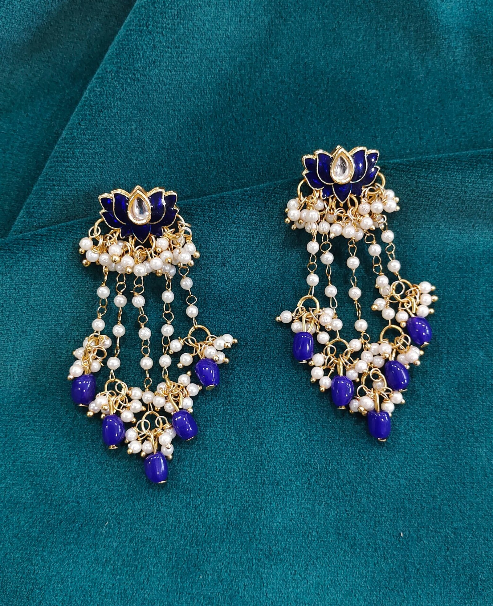 Tags: beads, earring, handmade, handmade earrings, kundan work, long earring, pearl, trendy
