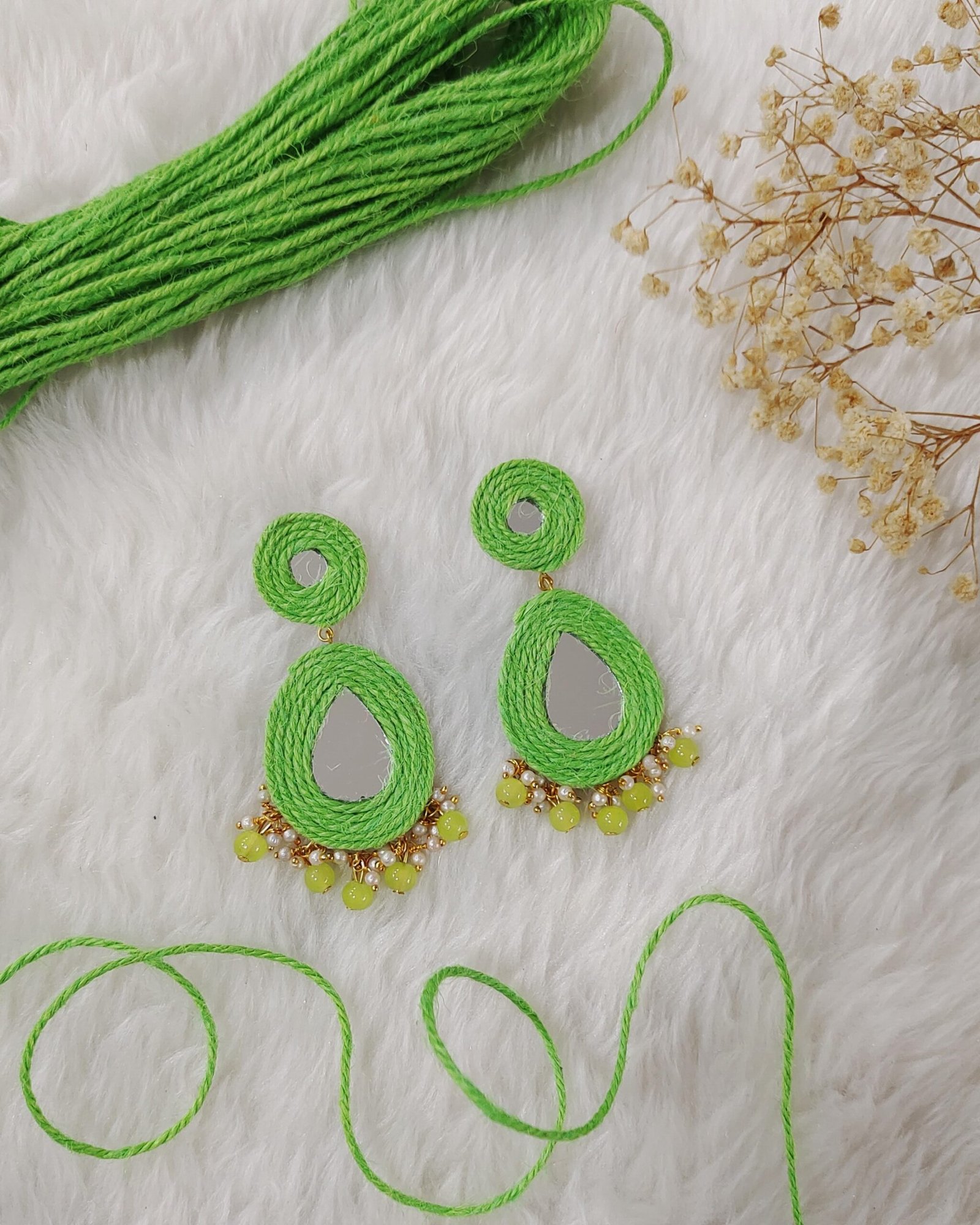Tags: boho earring, earring, handcrafted, handmade, handmade earrings, jute earring, mirror, mirror earring