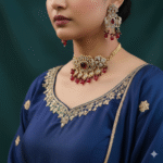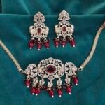 Tags: bridal set, choker, choker set, delicate neck piece, festive perfect, Golden necklace, heavy look, luxury, Necklace, polki, ruby, statement piece, wedding collection