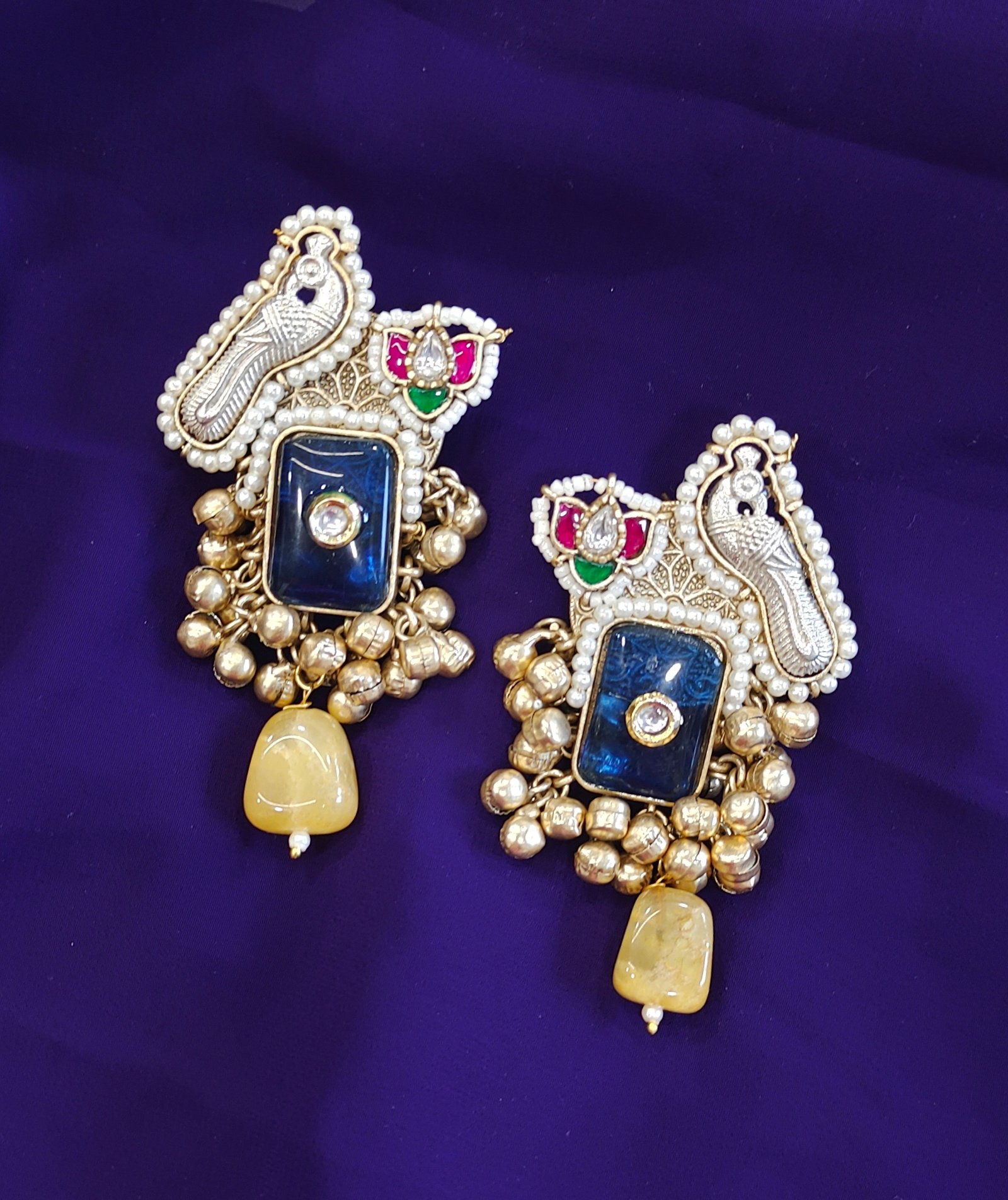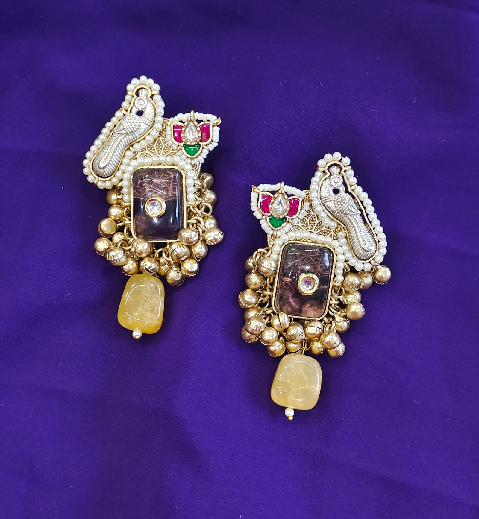 Tags: brass earrings, classic earrings, dangle earrings, Earrings, jumkha, kashmiri earring, kundan work, premium, statement piece
